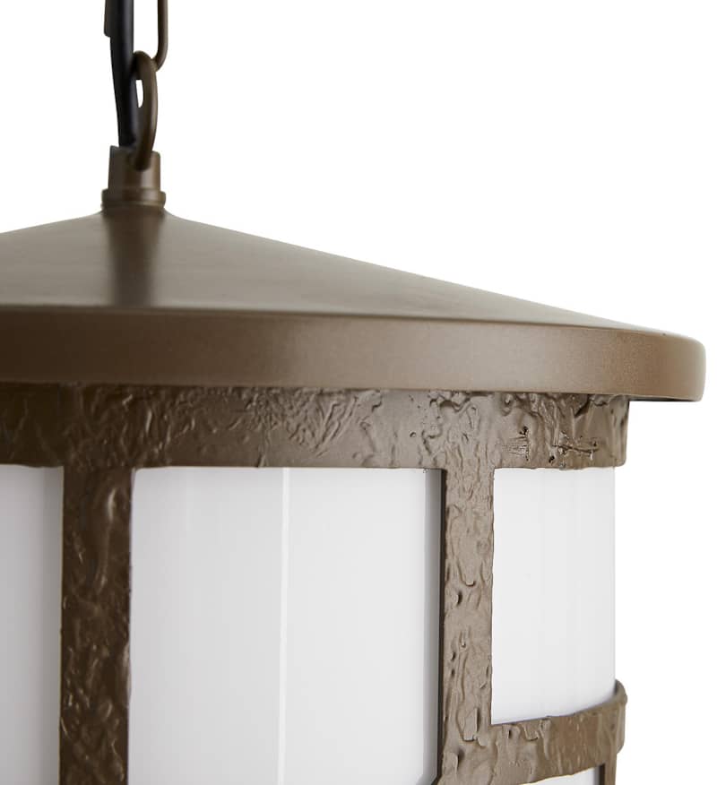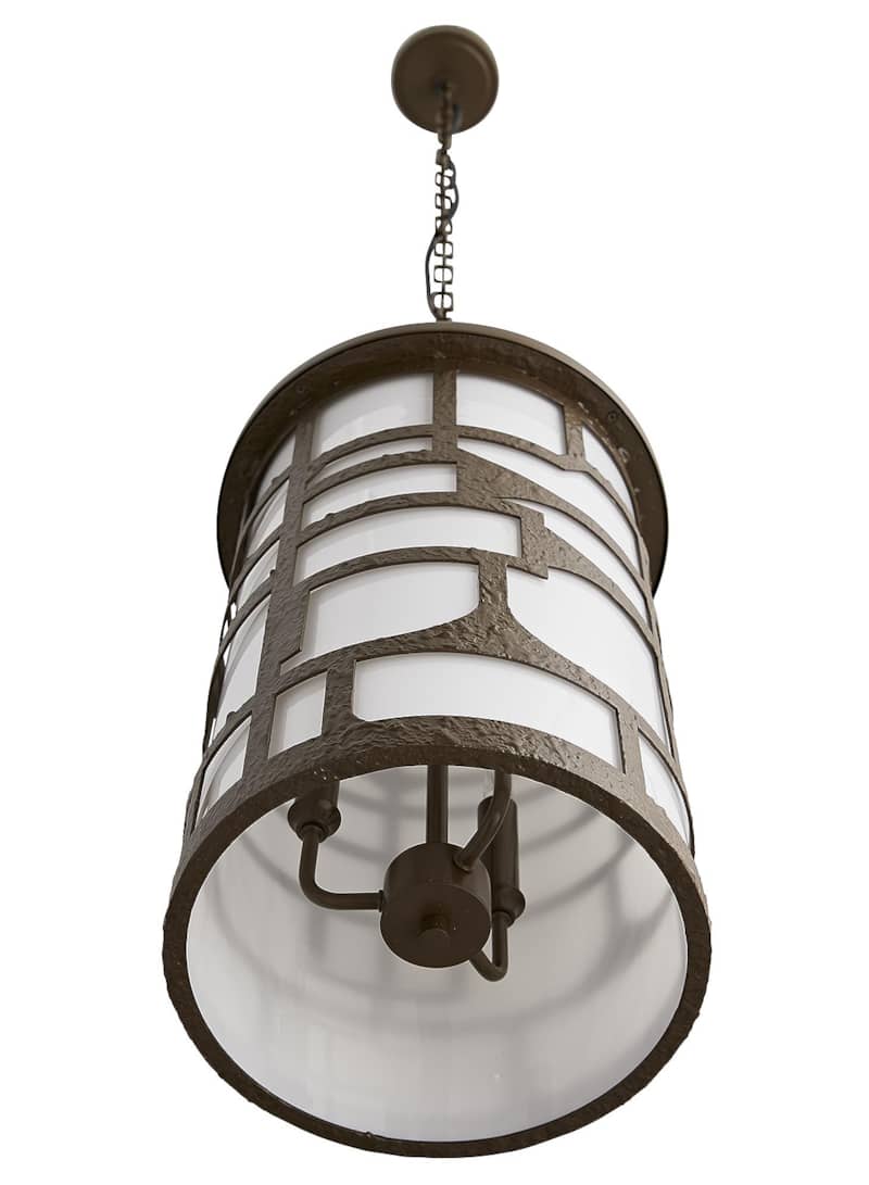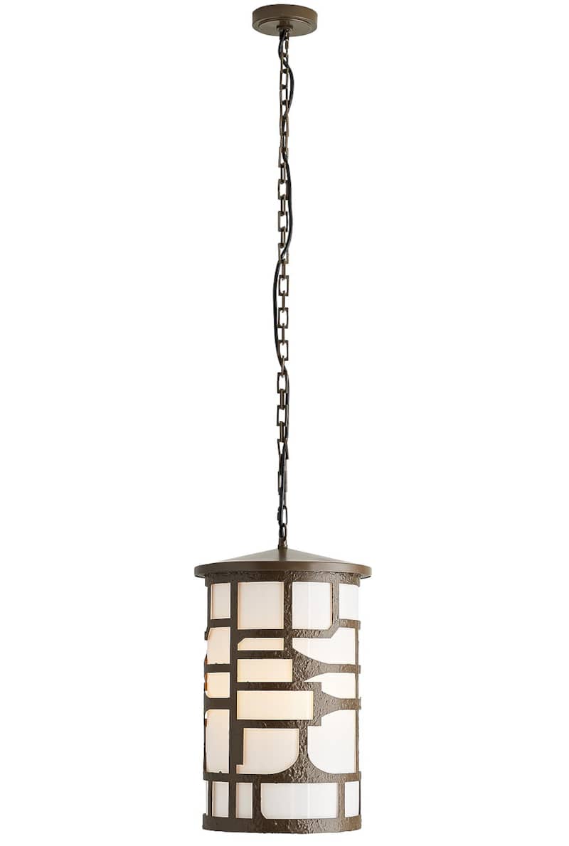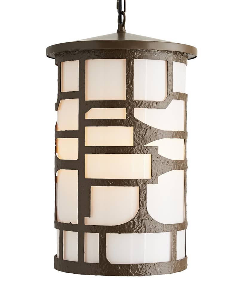 Arteriors 49223 Shani Aged Brass Outdoor PendantThe mid-century craftsman style of this pendant light makes it intriguing and modern, while its grand scale gives it presence. The steel frame is almost sculptural, featuring a linear pattern that is hammered and finished in aged brass, adding to the mid-century modern feel. It conceals a sleeve of opal glass that filters the light from three bulbs, so the light it emits spreads warmly outward and openly downward. Additional chain (CHN-194) available. Approved for outdoor use. Features General