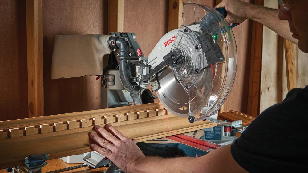 This Bosch Surgeon 12 In. miter saw features the Axial-Glide™ System and BITURBO Brushless Technology to deliver a professional cordless solution to the jobsite. The GCM18V-12GDC features the Bosch-exclusive Axial-Glide™ for wider cross-cuts, enhanced alignment and smooth glide for the life of the tool. This system features and articulating arm with no slide arms behind the saw, so it takes less space than a sliding-rail miter saw. It delivers a large cutting capacity, with a 4.7 In. depth and a 15.7 In. width/crosscut. The bevel controls are upfront for easy access. This compact saw is portable while being compatible with a variety of 12 In. blades. This miter saw is part of the PROFACTOR System, which pairs BITURBO Brushless Technology with a CORE18V PROFACTOR battery. BITURBO Brushless Technology is a high-performance motor and drive-train system designed to deliver power comparable to high-demand corded tools. It has ECO mode, which extends the battery runtime by up to 20%. The saw features connectivity (module sold separately), providing a link to a connected device via Bosch Toolbox App to customize speed selection and individual mode setting.The saw provides integrated base extensions that extend material support up to 43 In. The 4-3/4 In. tall fence design supports taller material for accurate cuts.