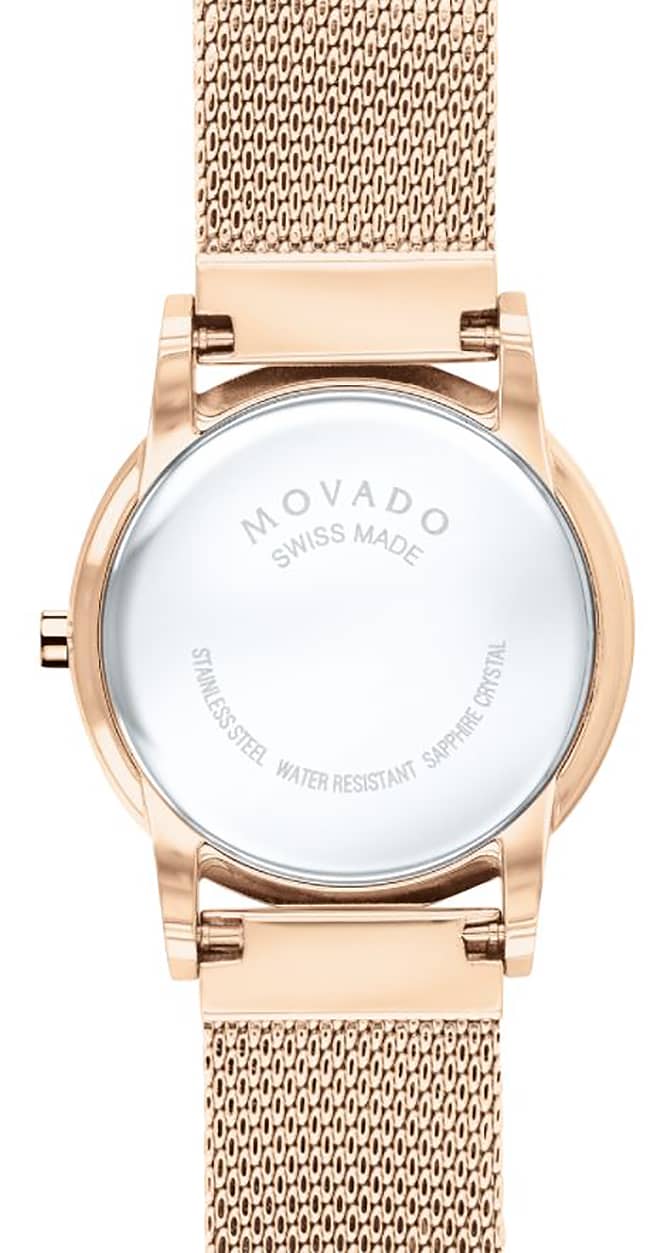 Movado Museum Classic White MOP w/ Diamonds Dial Rose Gold-Tone PVD Mesh Bracelet Watch, 28mm
